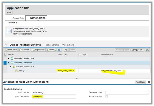 I have created a Web Dynpro with two views VIEW_GENERAL_DATA and VIEW_DIMENSION_DATA and two windows WIN_GENERAL_DATA and WIN_DIMENSION_DATA.