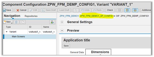 In configuration screen click on ZPW_FPM_DEMO1_AP_CONFIG to go back to previous screen.