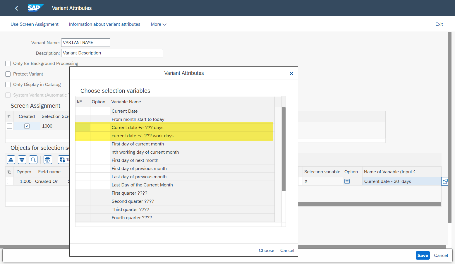 Let me explain how this works in classical report’s selection screen. Assume we have a report which lists materials along with the ‘Created On‘ date. As a person who is responsible to make sure material data is accurate I like to see the list of materials created in the last 30 days. I can while creating report variant select this option ‘Current date +/- ??? days‘ specify -30 and save. Now every time I run the report with this saved variant system automatically calculates from and to date and give me the list of material created in last 30 days, I no longer have to manually specify from and to date.