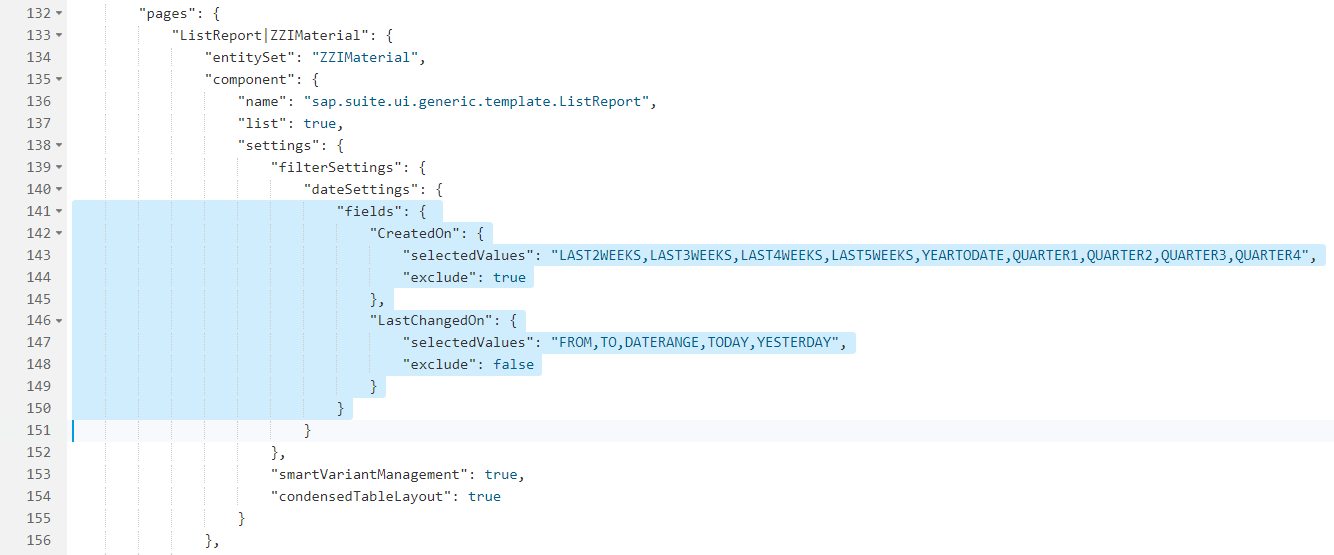 Following these changes, Dynamic Date Picker appeared on Date. I didn’t run this app in Fiori Launchpad so I am not sure whether values specified will get stored in save Variant or not. If it doesn’t then additional code will be required in the controller. I would recommend reading this documentation in case take this route to implement Dynamic Date Picker.