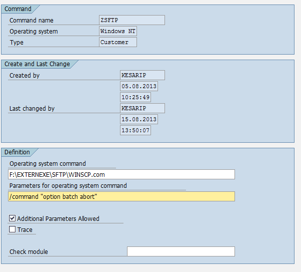Step 3: Create command in SM69 which will call Winscp.com