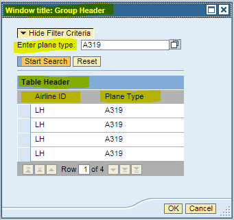 Using WDR_OVS component I will implement search to display values based on plane type. I will do this in steps to explain one thing at a time