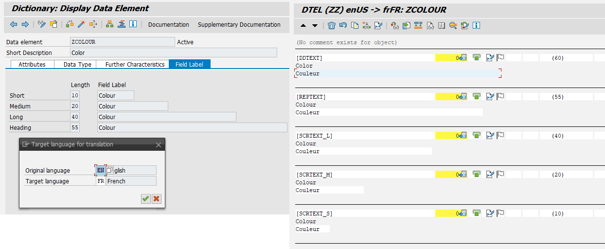 Once I maintain translation for domain values I should be able to see values in French for Colour keys. Translating in SE11.